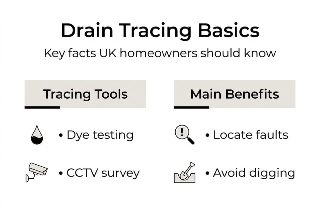 Blocked drains are frustrating enough. But when the same problem keeps coming back, or you simply cannot work out where the issue lies, the costs and stress can spiral fast. Many homeowners assume that finding an underground drainage fault means tearing up the garden or lifting floorboards. That is rarely true. Drain tracing is a professional technique that locates, maps, and diagnoses your drainage system without unnecessary destruction. This guide explains what drain tracing is, how it works, when you need it, and what it costs, so you can make informed decisions about your home's drainage.