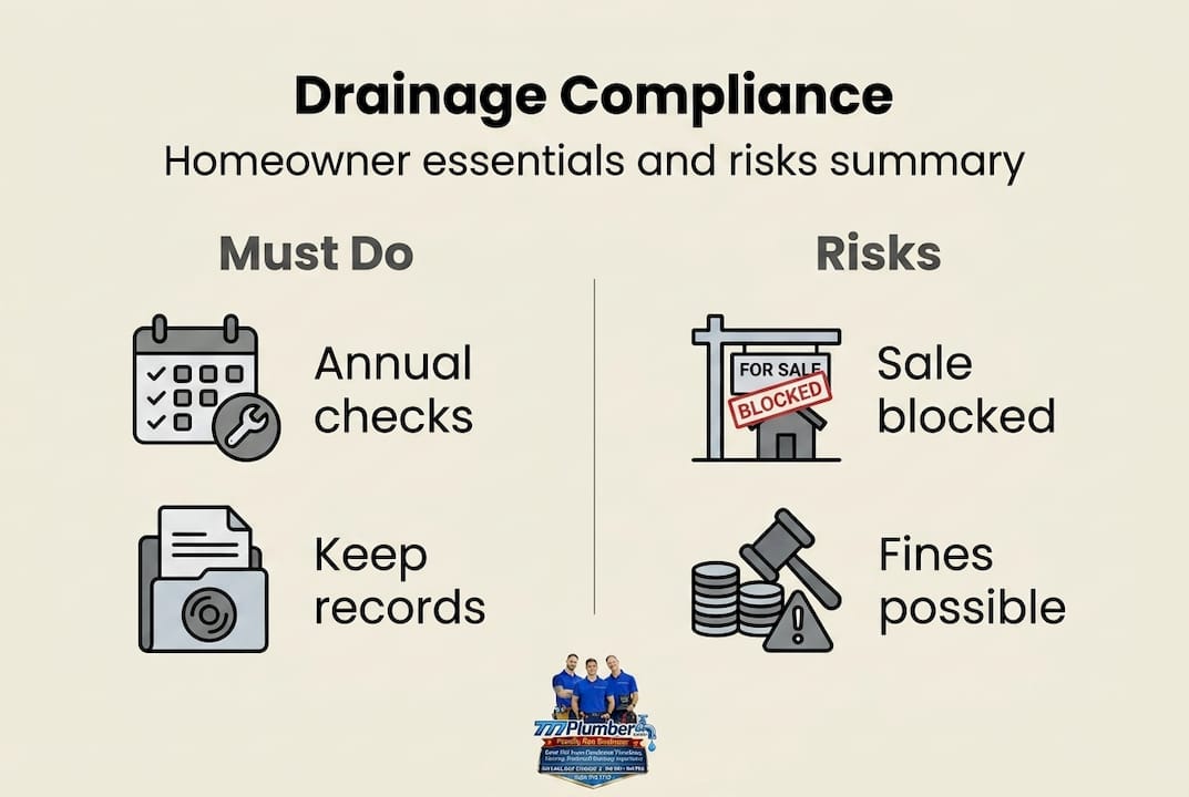 - Drainage compliance ensures UK properties meet legal standards, avoiding fines, insurance issues, and sale delays.