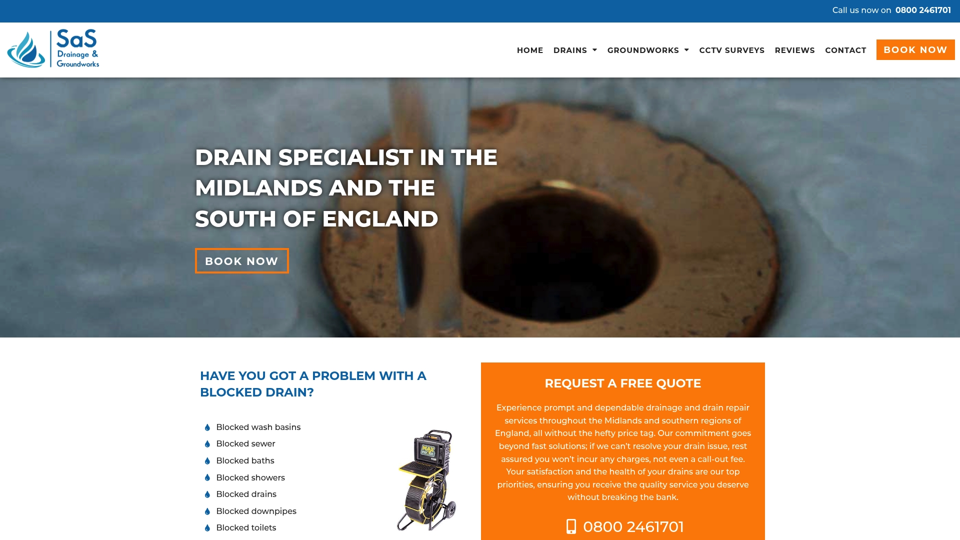 | SaS Drainage & Groundworks Ltd | Drain cleaning, repair, relining, groundworks, 24/7 service | Qualified engineers, price-beat guarantee, eco-friendly solutions | Site navigation complexity, limited to specific regions | Midlands and southern England |