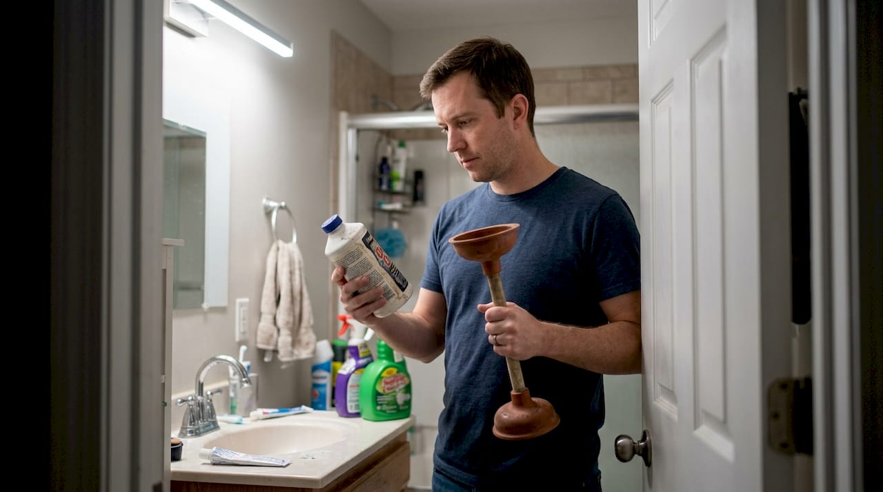 Not every blocked drain requires an emergency call-out. A slow-draining bathroom sink caused by a build-up of hair and soap scum is a reasonable candidate for a plunger or a drain snake. The question is knowing where the line is.