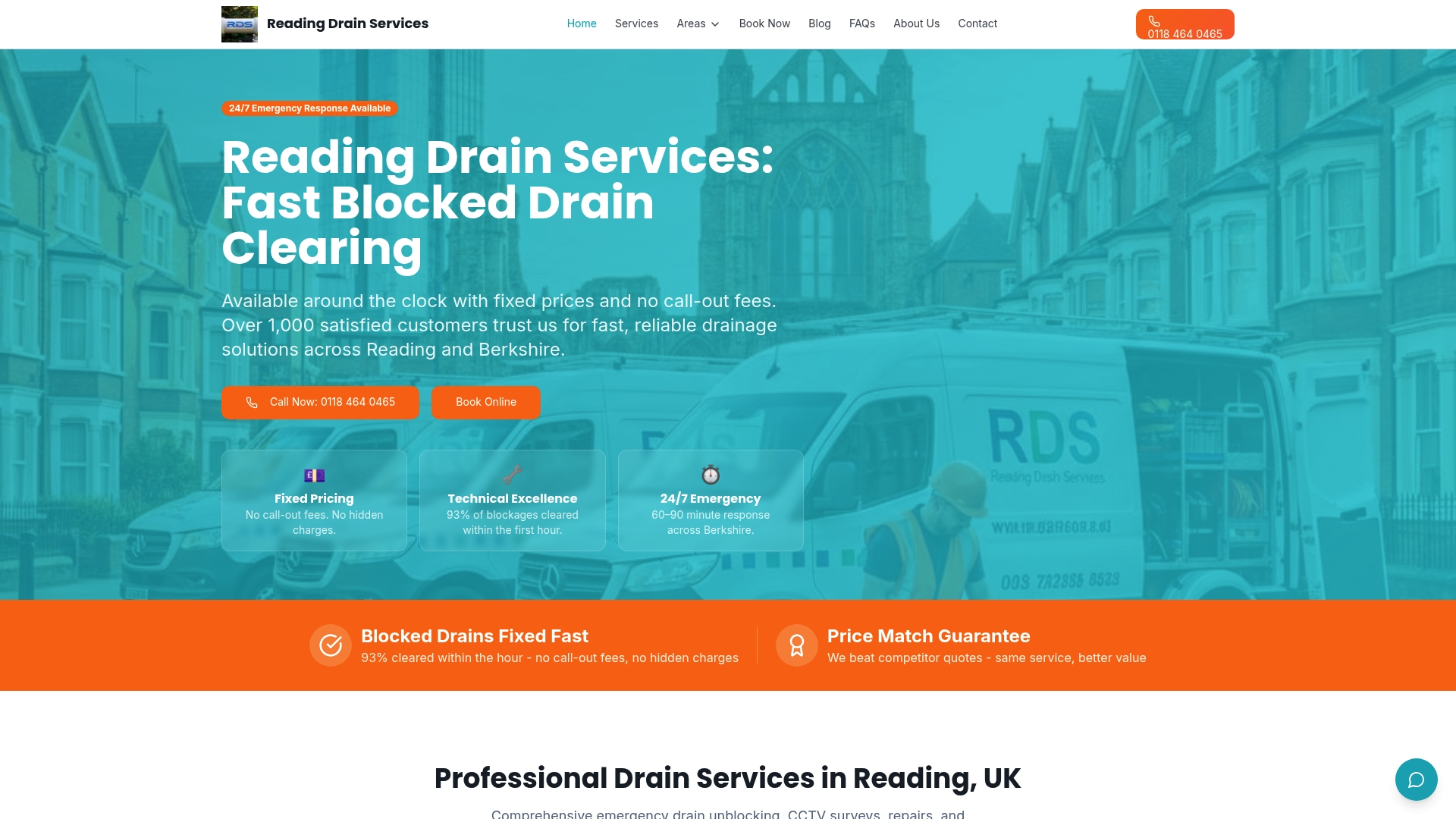 | Reading Drain Services | Transparent pricing, local expertise, no call-out fees | 93% blockages cleared in one hour, personal approach, licensed engineers | Quote required | Visit Site |