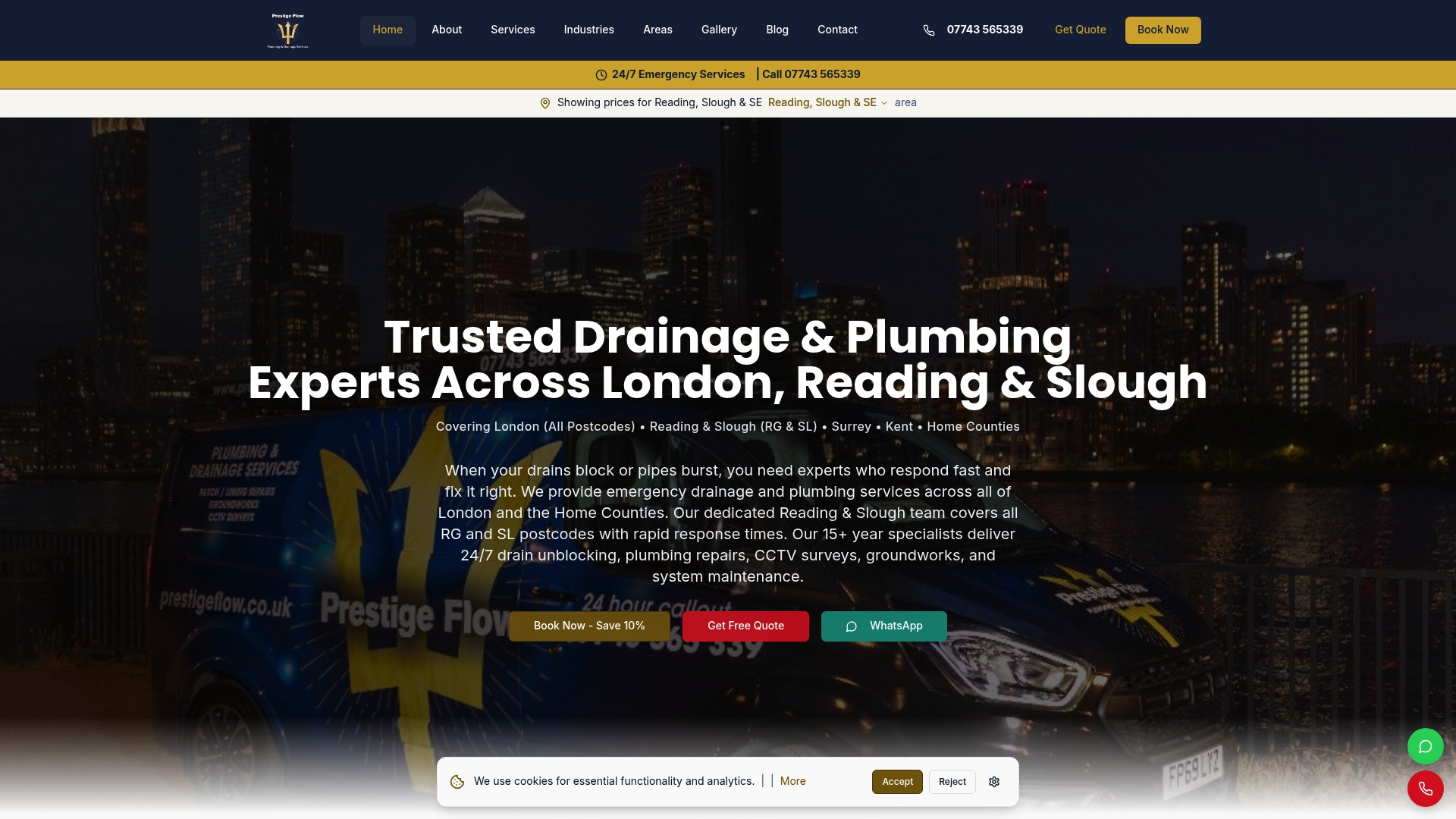 Reading Drain Services delivers 24/7 emergency response for homes and businesses across Reading and the wider Berkshire area. The family run, fully licensed team advertises fast arrivals and fixed pricing with no call out fees, which appeals when time and clarity matter.